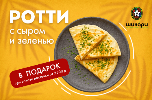 Хотите оказаться в Индии прямо сейчас? Закажите доставку от 2500 руб. в Шикари и наслаждайтесь нашим подарком – традиционной индийской лепешкой Роти с сыром и зеленью.